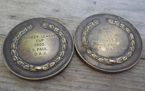 Pair of Hockey medals awarded to S Paul - Queen's Battery 1953