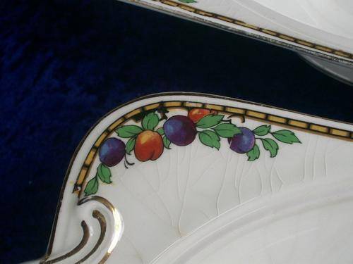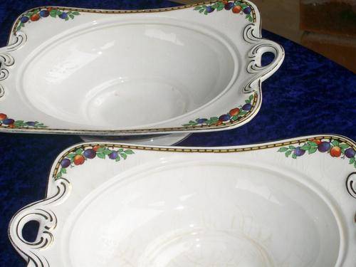 MEASURING 8.5 CM DEEP AND 31.5 CM BY 18.5 CM. IN OVERALL GOOD CONDITION EXCEPT FOR THE CRAZING. THE GILDING MOSTLY STILL INTACT. THERE ARE A FEW SPOTS OF BRUISING TO THE GLAZE.