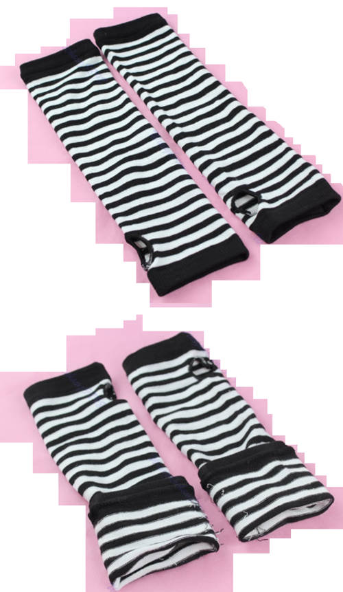 Pair of Long Sleeve Style Fingerless Gloves Black and White Stripe