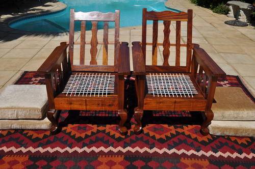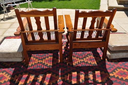 Pair of Morris Black Wood Riempie Arm Chairs --- Collections Only!!!!