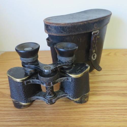 Pair of Old Military " Carl Zeiss" Faliez Paris Binoculars in leather Case