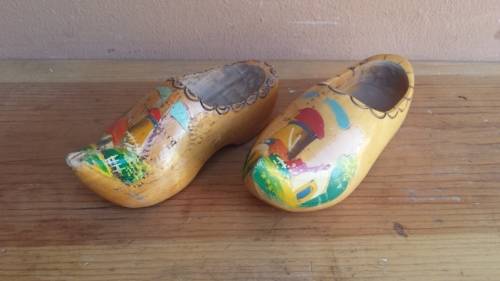 Pair of old wooden cloggs. Definitely for ornamental use only. Not exactly the same, but close enough. Lovely hanging on a wall or in a showcase. One bit chipped but both still in a nice enough condition.