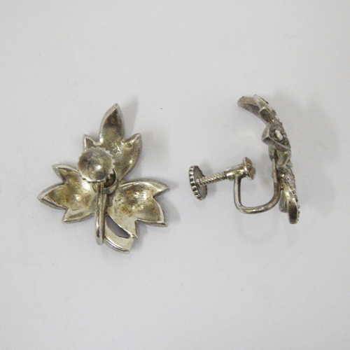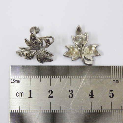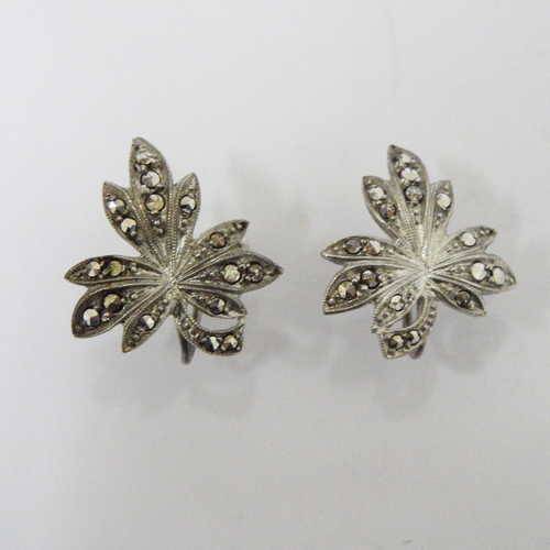 Pair of Silver Marcasite screw on earrings - Weighs : 5.9g