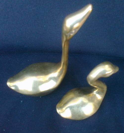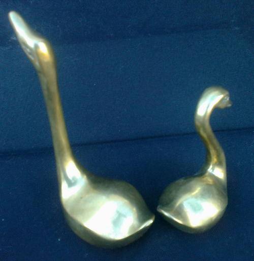 Description: PAIR OF SOLID BRASS SWANS - combined weight 0,31Kg. Condition: Very good used condition, no dents or major scratches. Very slight wear and tear. Approximate size: Small swan: 62mm long x 40mm wide x 78mm high. Large swan: 67mm long x 40mm wide x 128mm high. Other: Slight colour variations possible between picture and real item. Please regard pictures as part of the description of the item.