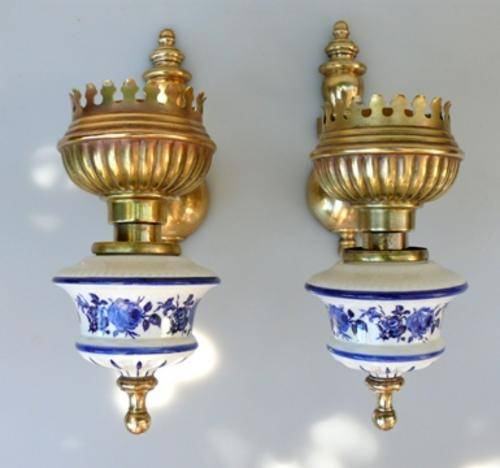 PAIR OF STUNNING ELECTR.WALL LIGHTS,BRASS AND PORCELAIN // Pls check pics etc..
