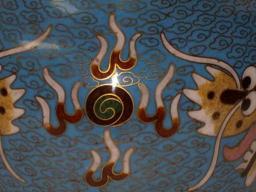 Imperial dragons on a blue ground. In Chinese mythology the dragon is a blessed,