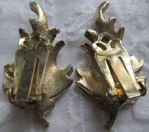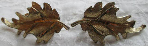 THIS IS A LOVELY PAIR OF VINTAGE 1960s CLIP ON EARINGS. SIGNED BY B.S.K. POSSIBLY GOLD PLATED ? THE EARINGS HAVE A WELL DESIGNED SHAPE THE SURFACE HAS A BRUSHED EFFECT CONTRASTING WITH THE SHINY VEINED DETAIL. THE CLIPS ARE WORKING PERFECTLY. LENGTH OF EARINGS 3.5cm, WIDTH 2cm.