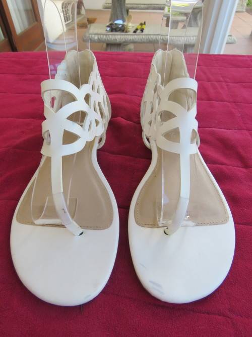 Pair of white roman style sandals in white by FOSHINI in size 5.Good condition.