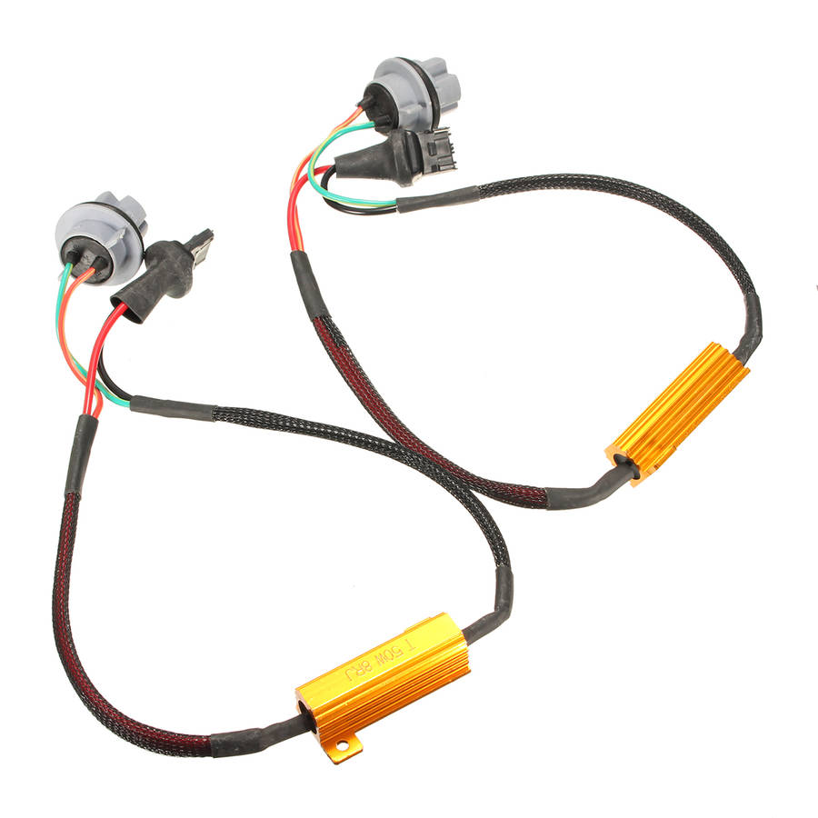 Description: -100% brand new, high quality. -This LED decoder built-in resistor for warning canceller anti hyper flash or blinker while you replace the caras LED turn signal light. -Compatible for all automobiles equipped with a 12 Volt DC power source. -Cancel error message can cause by your board computer to check. -To fix hyper flashing on turning signal. -No cutting or splicing,to twist your LED bulb onto the base,then to twist other end into your existing bulb socket. -plug and play. Specification: -Color: as pictures show -Material:16 Gauge wire, high efficient copper wiring -Voltage: DC 12V -Power: 6 Ohm, 50W -Quantity: 1 pair -Cross Reference: 7440, 7441, 990, 991, 992, 992A, T20, W215W, W3X16Q,etc. Package Included: 2 x LED Decoder Resistor