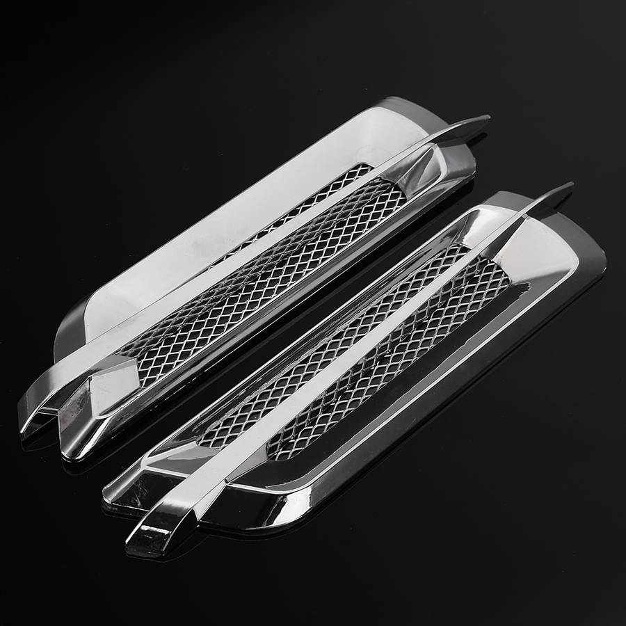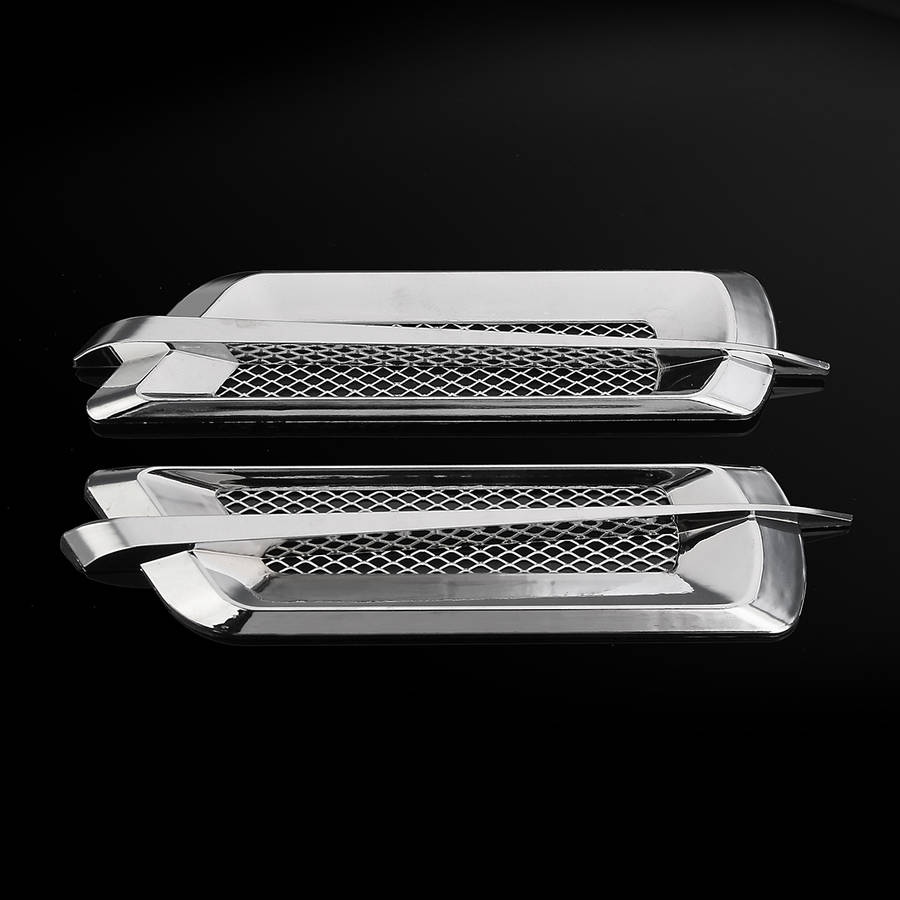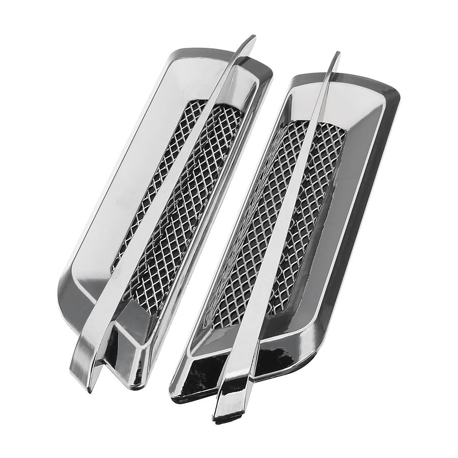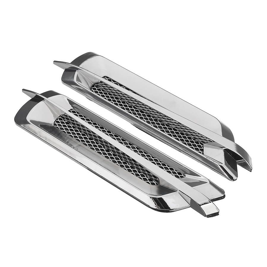 Pair Universal Silver Car Side Air Flow Vent Fender Intake Decoration Stickers