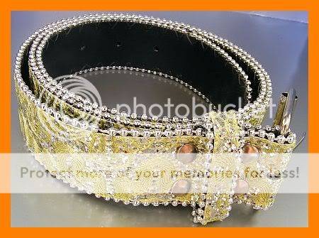 PALE GREEN LACE AND GLITTER BLACK BELT - 105cm - REALLY STUNNING