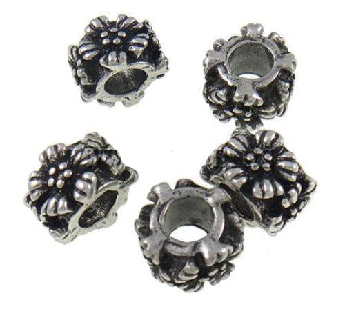 PANDORA STYLE ANTIQUE SILVER DRUM BEADS WITH FLORAL DESIGN