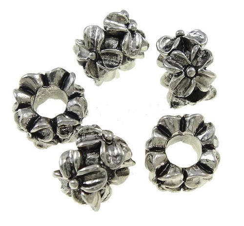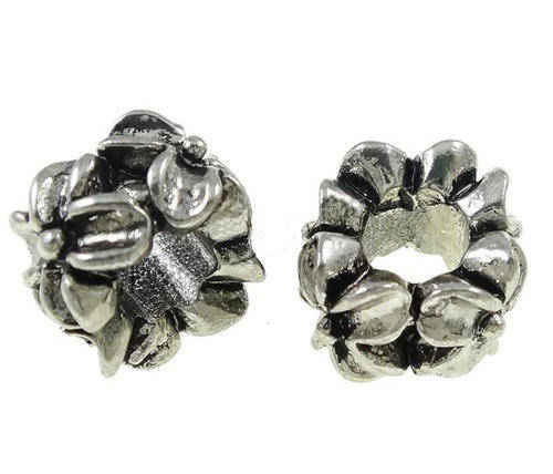PANDORA STYLE - ANTIQUE SILVER -RONDELLE - SPACER BEADS - RAISED FLOWERS - 11x8mm