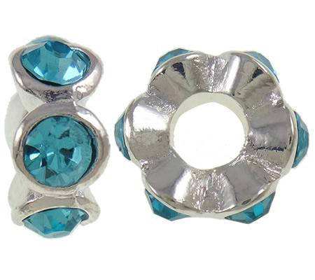 PANDORA STYLE - DONUT - BEAD SPACER - SILVER WITH BLUE RHINESTONES