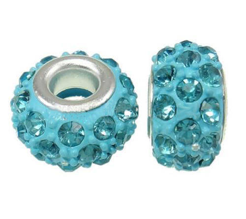 PANDORA STYLE - MURANO - RONDELLE BEADS - WITH LIGHT BLUE ENAMEL & RHINESTONES - SINGLE CORE