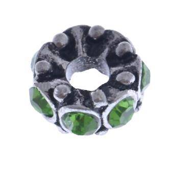 PANDORA STYLE RONDELLE BEADS WITH A GRADE GREEN RHINESTONES