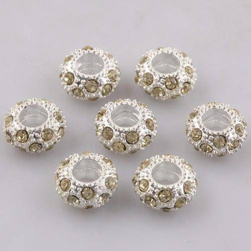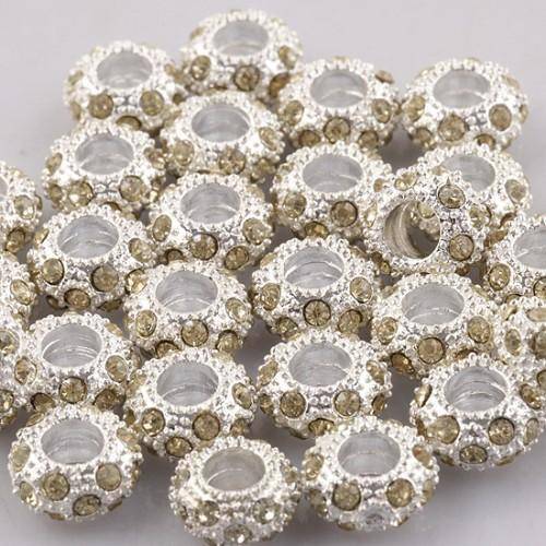 PANDORA STYLE - SILVER - CHAMPAGNE RHINESTONE - SPACER BEADS - FITS EUROPEAN BRACELETS - 11 x 6mm