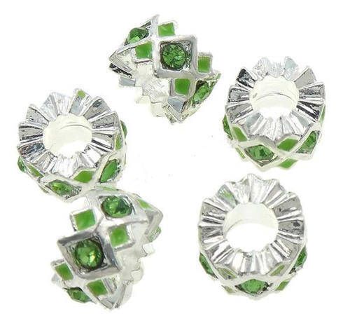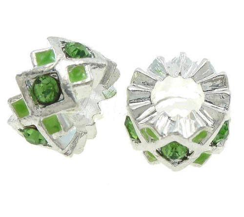 PANDORA STYLE - SILVER - RONDELLE BEADS - GREEN RHINESTONES