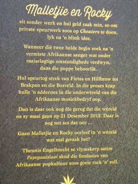 Sagteband in baie goeie toestand. Eerste uitgawe, eerste druk 2014 met 255 bladsye. Inderdaad 'n rowwe roman en beslis nie vir sensitiewe lesers nie. Growwe taal. Posgeld in RSA = R60.00.