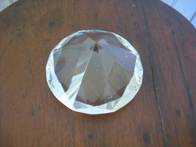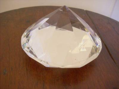 Lovely glass paperweight/dump, this item looks like a big diamond, it is of clear glass a good weight and measures 65mm high and a dia 120mm.