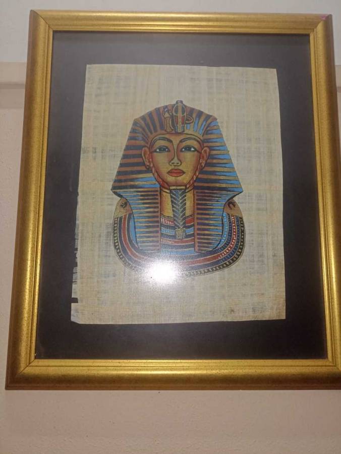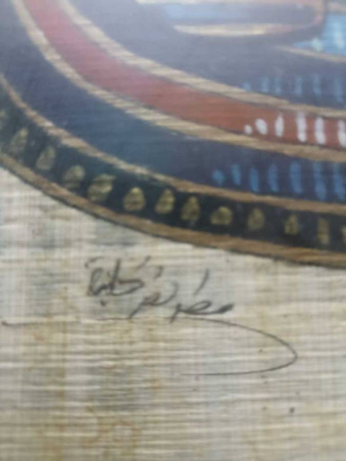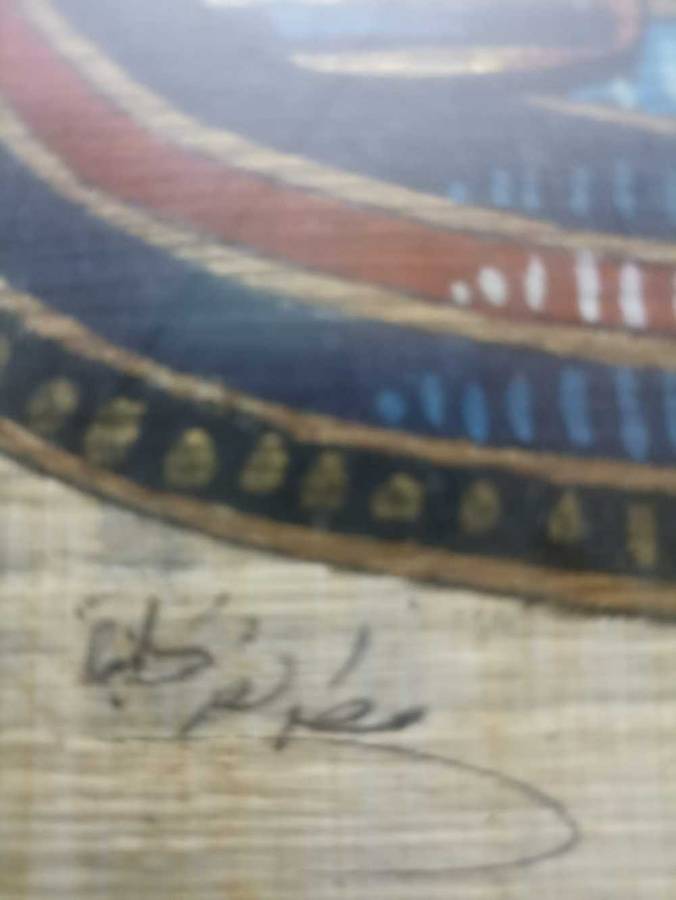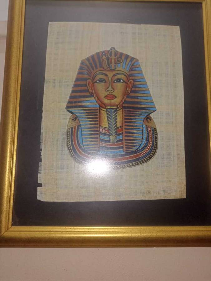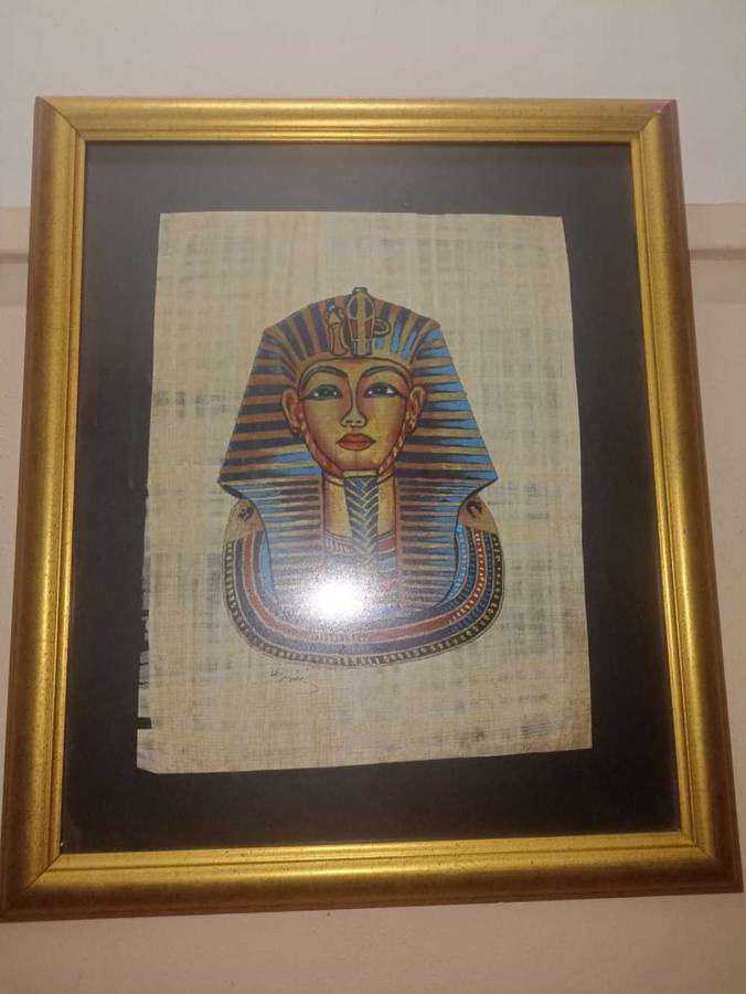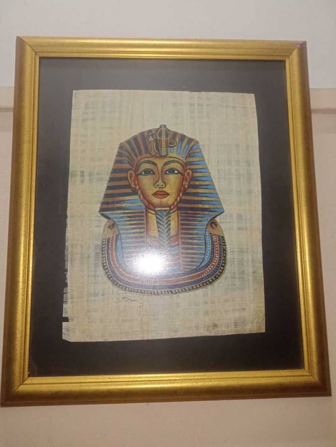 Papyrus Egyptian king Tutankhamen framed and signed.
