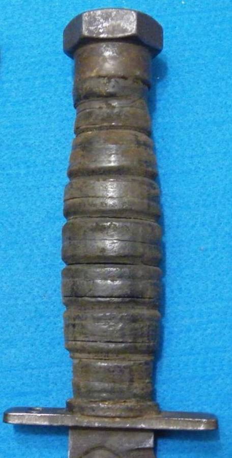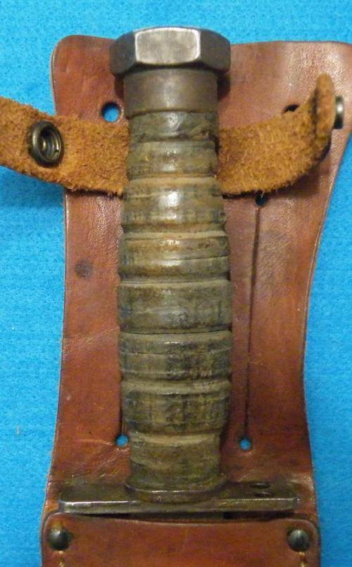 This is an example of a knife that would have been issued to infantry paratroopers in the SADF. The origins of these knives is the US, where it was developed for jet pilots. The knife was obtained in South Africa, but whether it was actually issued here is unknown. The sheath came from the US, but is correct to the knife. There is mannequin dressed in parabat gear at the military museum in Johannesburg where the knife can be seen strapped to the leg.