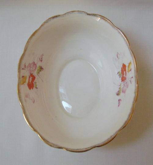 A beautiful fine china sugar bowl decorated with delicate sprays of orange, pink and yellow