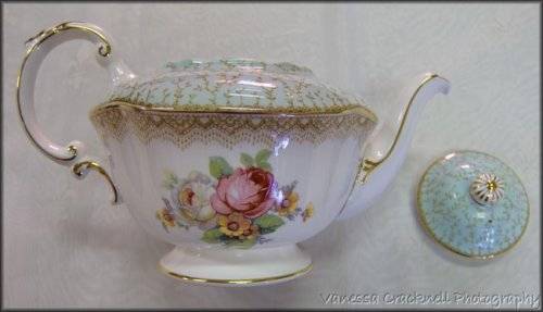 This PARAGON TEAPOT - PALE AQUA BLUE WITH GILT & ROSE PATTERN - EXCELLENT CONDITION would make a lovely addition to your collection.