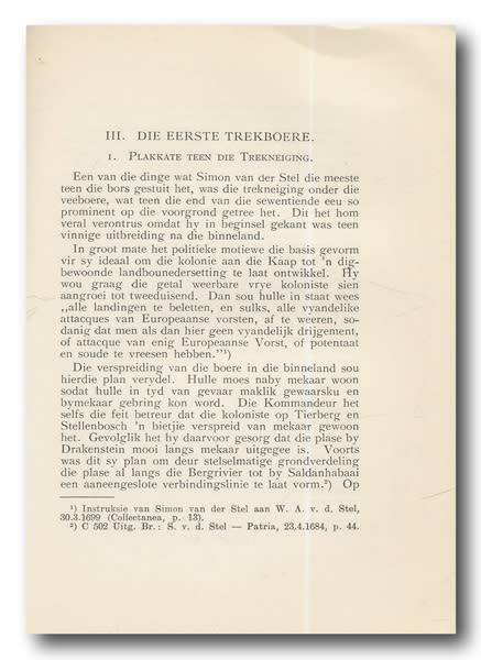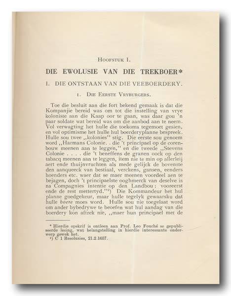 Die Trekboer in die Geskiedenis van die Kaapkolonie, 1657-1842 deur Dr. PJ van der Merwe (Ons Geskiedenis Serie 1938). A5, hardeband, 334 bls. Buiteblad verweer aan regter boonste hoek - verder in goeie stewige toestand. Boek binne in goeie leesbare toestand - 2 bladsye se kante is geskeur(sien onderstaande foto).