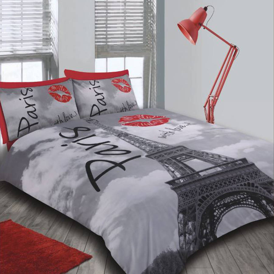 PARIS CITY LOVE EIFFEL TOWER QUILT DUVET COVER BEDDING SET SINGLE DOUBLE KING
