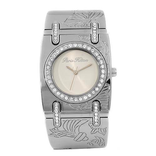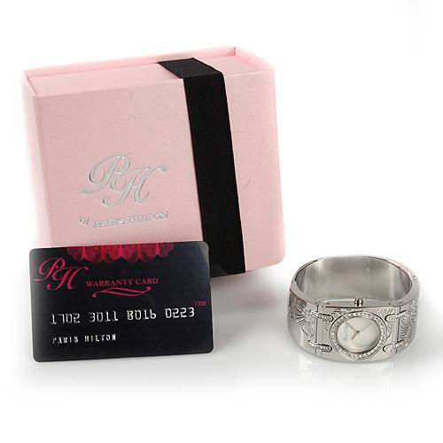 Original brand name LADIES PARIS HILTON Silver Bangle Watch, Model 138.4468.60 with Genuine Crystals