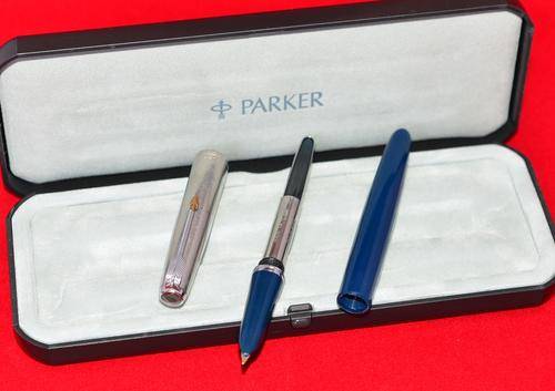 This pen is a good writer and has been in use. There is a bit of patina on the clip and there are dings and nicks on the cap. Not a good looker but a smooth writer with a 14k gold nib in medium size.