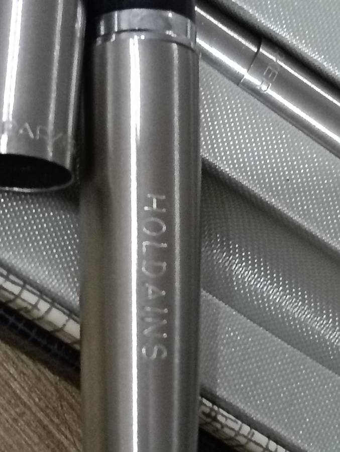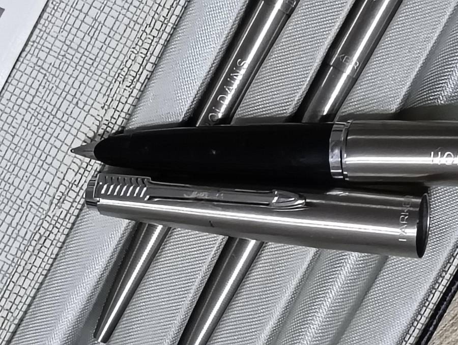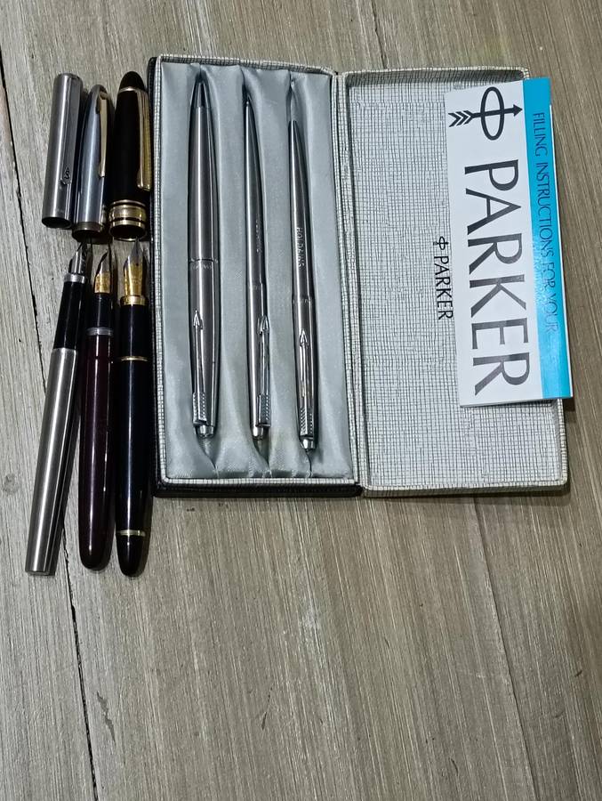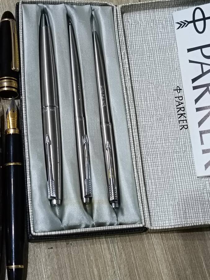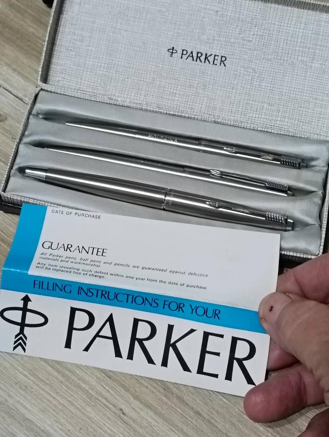 THE PARKER SET HAS AN INSCRIPTION ON IT'S SIDE.