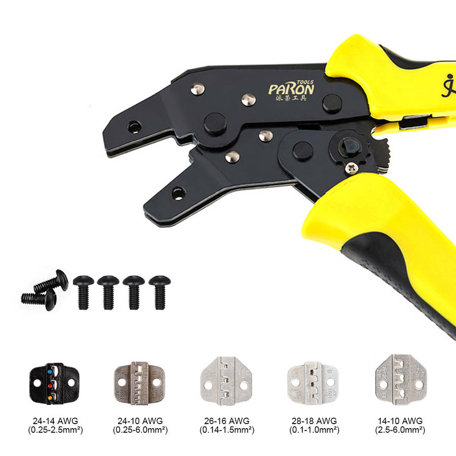 1.Make of manganese steel material,durable and solid,easy to use. 2.Professional Ratchet Crimping Tool Kit,With 5pcs JX-1601 dies(JX-1601-01,JX-1601-06,JX-1601-08,JX-1601-10,JX-1601-2546) andScrewdriver,Dies change quickly and easily with a Screwdriver. 3.This is an electrician, and electrical maintenance man manufacturing enterprises the necessary tools.