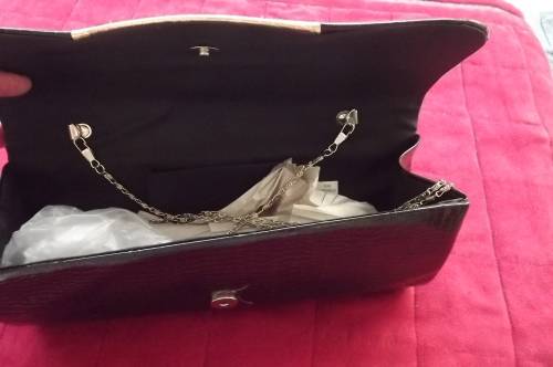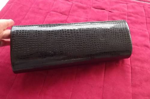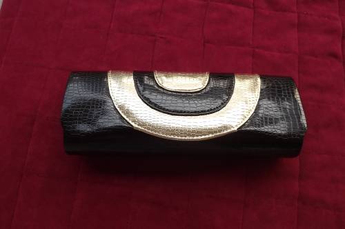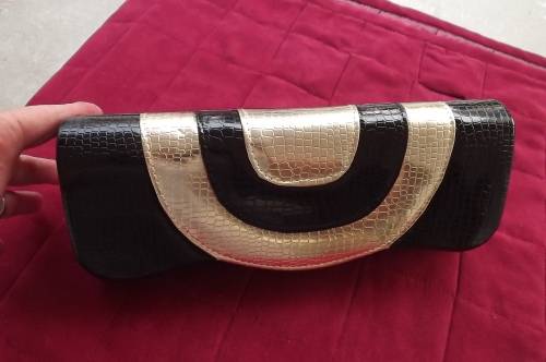 Patent leather look black and gold clutch bag for evening.Animal skin finish. 30x12cm.New