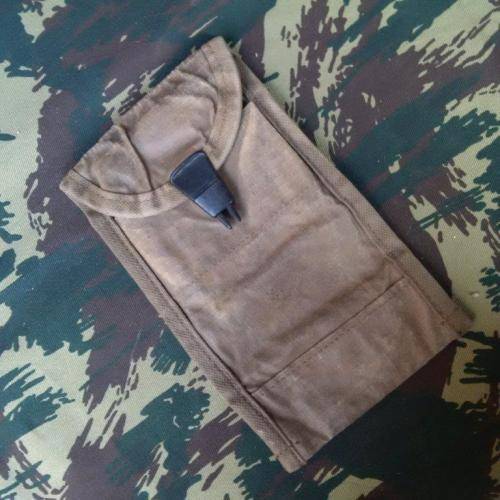 Here we have on auction a VERY rare pattern 80 SADF era webbing pouch in "donkey brown" ripstop canvas.
