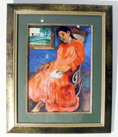 Paul Gauguin at his best!! This reproduction print will blow you away! The quality is outstanding and it is exquisitely framed. This print is a must to enhance that special area. It measures 31cm x 22cm and the frame measures 46cm x 37cm. Indulge today at a very low price!!