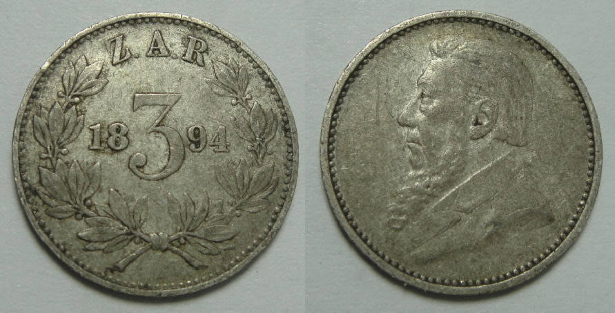 Paul Kruger Z.A.R. : Three Pence (Tickey) of 1894 (Extremely Fine)