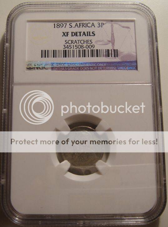 Paul Kruger Z.A.R. Tickey (3d) 1897 : NGC graded XF details