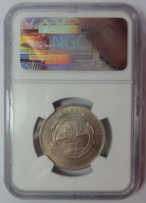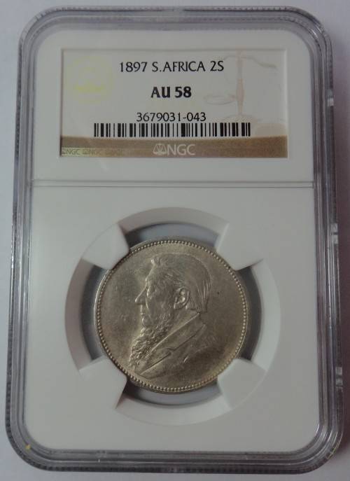 Paul Kruger ZAR: 2-Shillings (2/-) of 1897, NGC graded AU 58