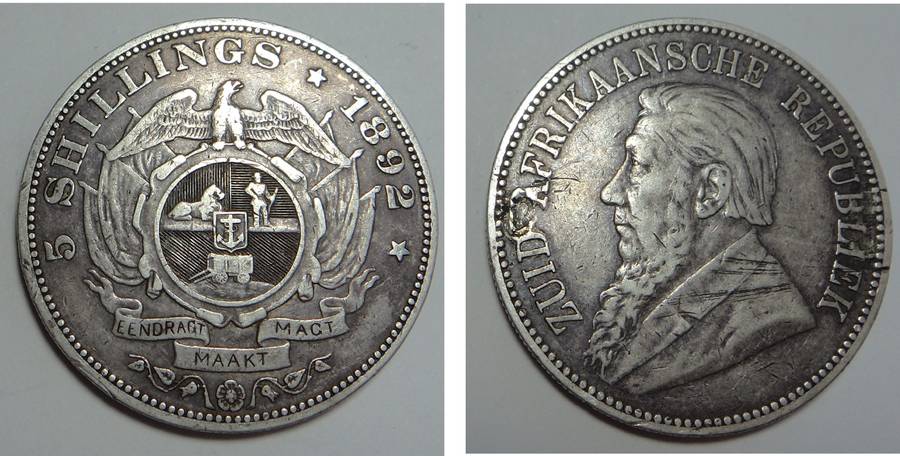 Paul Kruger ZAR: 5-Shillings (Double Shaft) 1892