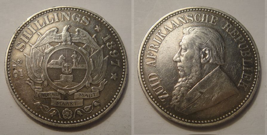 Paul Kruger ZAR: Cleaned Sterling Silver Half Crown (2/6-) of 1897