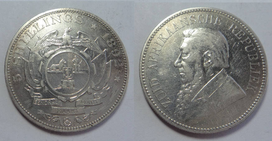 Paul Kruger ZAR: Crown (5/- Double Shaft) of 1892 (XF details)
