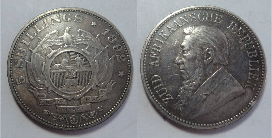 Paul Kruger ZAR: Crown (5/- Single Shaft) of 1892 (VF+ details)