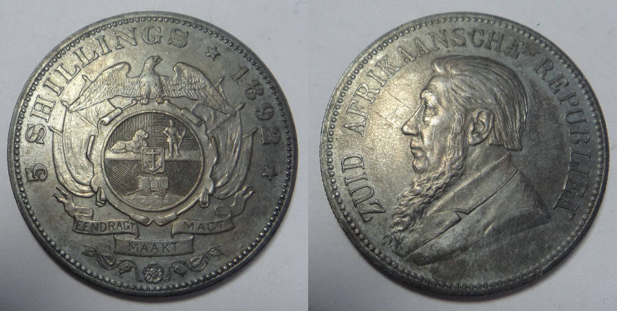 Paul Kruger ZAR Crown (Single Shaft 5/-) of 1892