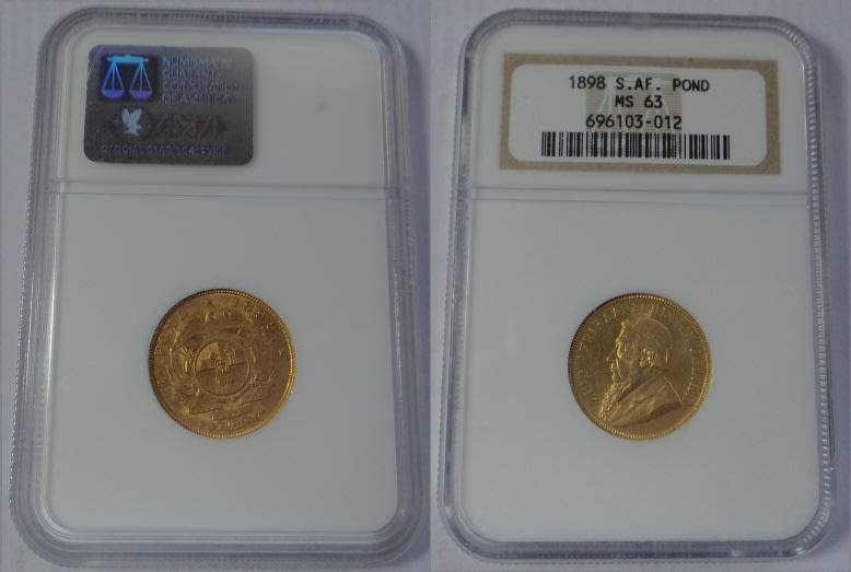 Paul Kruger ZAR: GOLD POND of 1898, NGC graded MS 63