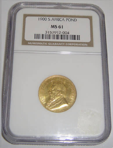 Paul Kruger ZAR : GOLD POND of 1900 : NGC graded MS 61
