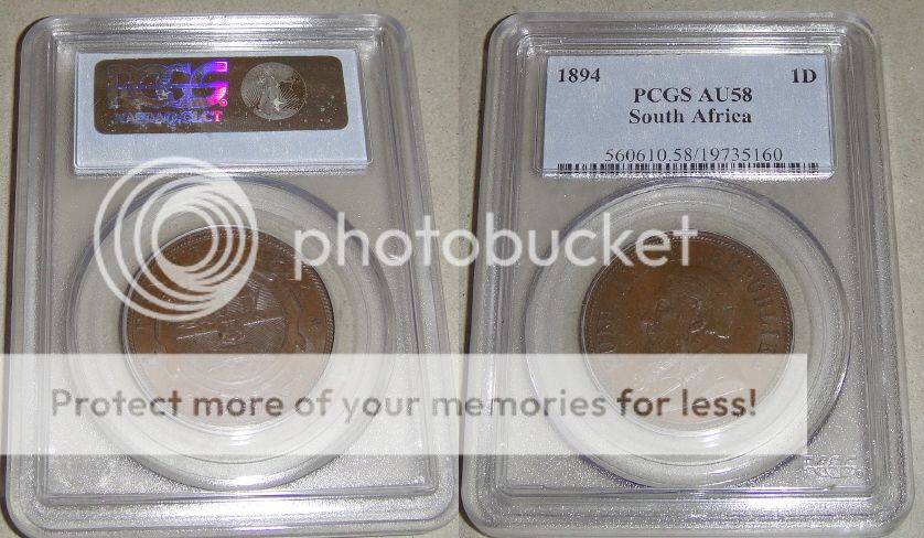 Paul Kruger ZAR : Penny (1d) of 1894 : PCGS graded AU58