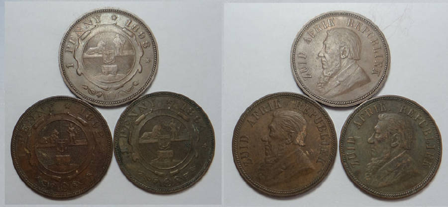 Paul Kruger ZAR: Penny Collection of 1892, 1894 and 1898