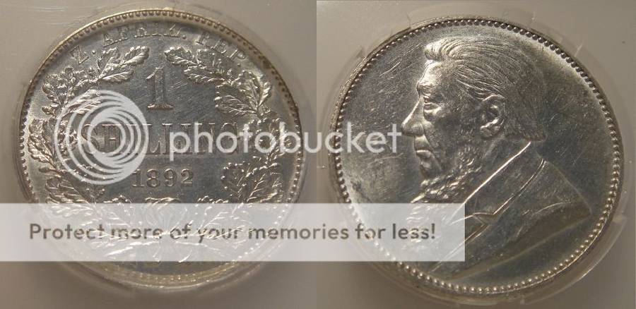 Paul Kruger ZAR Shilling (1/-) of 1892: Sangs graded AU58